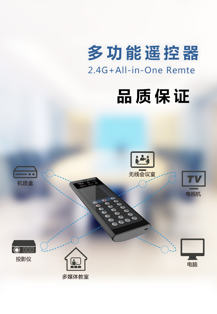 自主研發集遙控器、鼠标、麥克風、翻頁器、激光筆于一體,支持課件翻頁、課堂擴音等課堂操作功能,産品自帶锂電池,續航時間長達8小時,紅外傳輸距離可達20米。