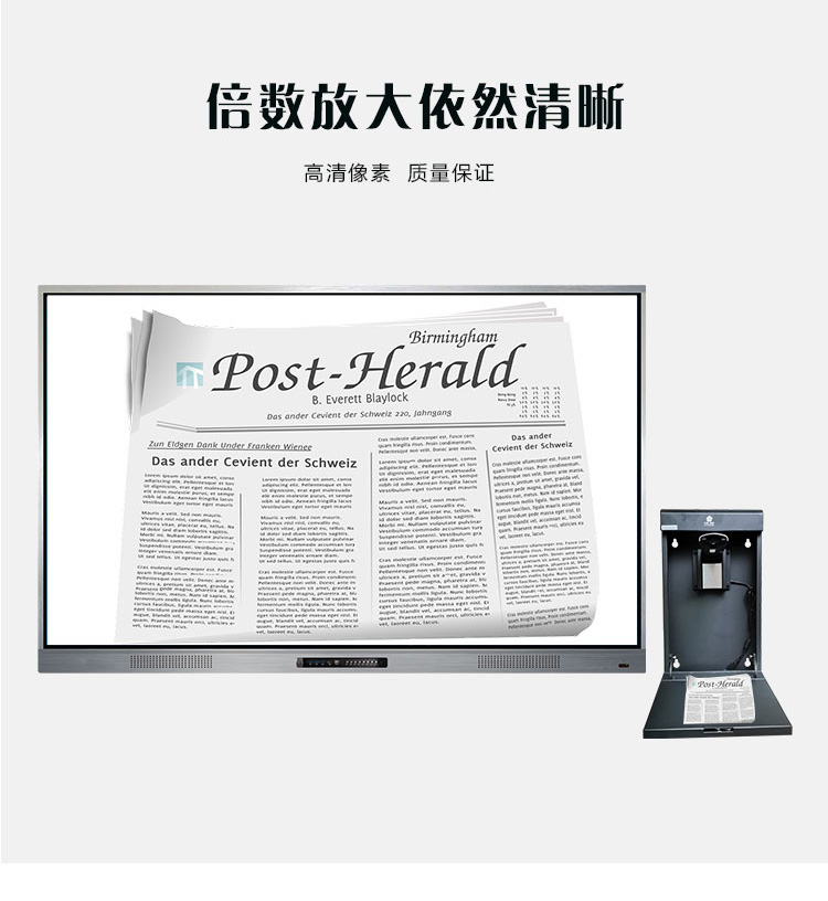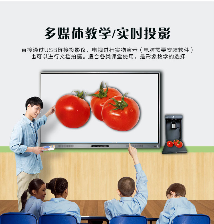 壁挂設計,采用高清攝像頭,1300萬像素,自帶OCR閱卷功能,支持批注、縮放、旋轉、保存分享、拍照等操作,有效提升課堂效率。