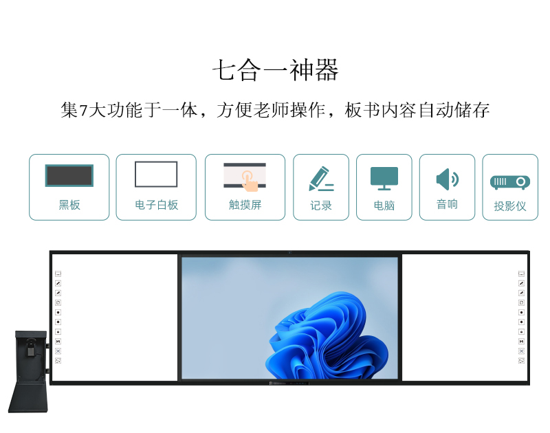 互聯黑闆-記錄闆書内容、再現課堂過程、轉化教學資源,闆書教學記憶一體機集六大産品于一機,在不改變老師闆書習慣的前提下,實現傳統教學與多媒體設備的智慧融合,設定了有闆書記憶、闆書同步顯示、闆書自動分享等多樣化功能,每一個功能的實現都賦予了自己的使命。