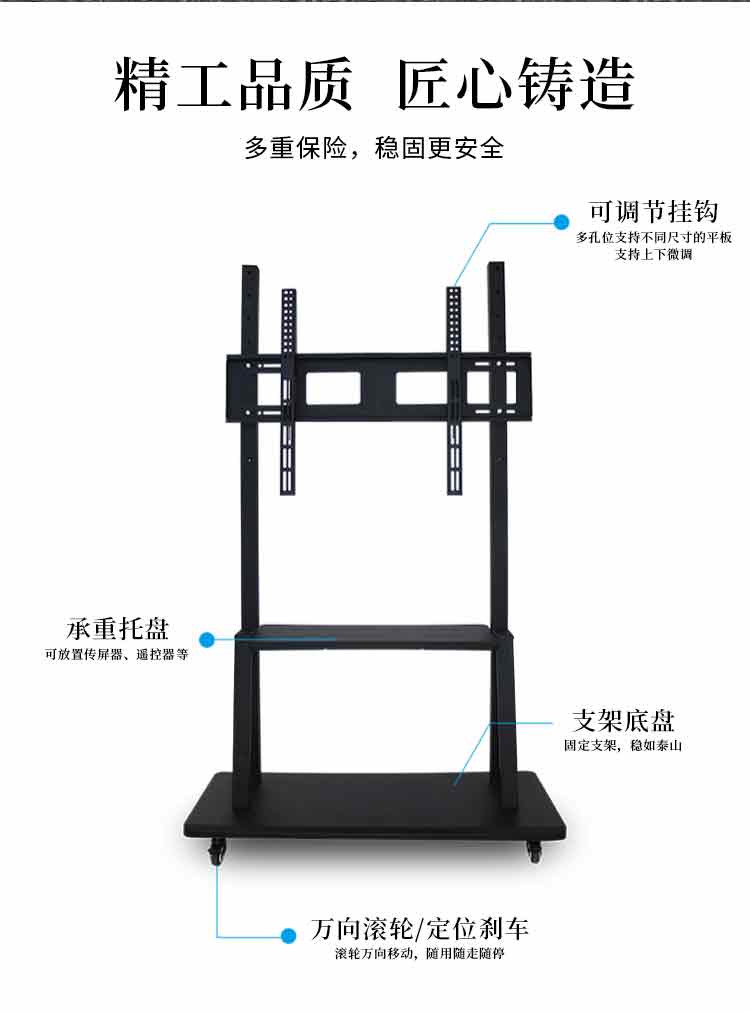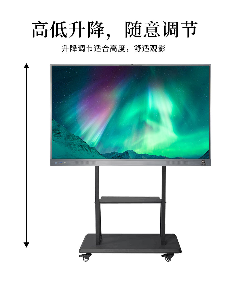 黑色教學會議移動支架專用液晶電視、廣告機、觸控一體機、電子白闆、教學會議等,高低升降,随意調節。