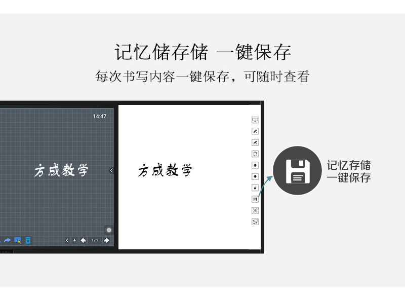 一鍵記憶——闆書内容自動存儲,解決了老師闆書擦除後内容沒有了的困擾;